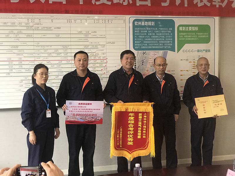 2020年12月24日,廣西華誼能源化工有限公司召開年度綜合考評表彰會,對優秀參建單位和先進個人進行了表彰。我司喜獲“年度EPC總承包綜合考評優秀獎”,施工經理左甫初、安裝工程師周國榮榮獲“優秀管理者”稱號?!驹斍椤?/p>